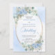 Make your special day unforgettable with this elegant watercolor wedding invitation, thoughtfully designed to shine with Zazzle’s premium print quality. Featuring soft pastel blue hydrangeas, delicate eucalyptus and greenery foliage, and a refined gold glitter oval frame, this invitation blends timeless romance with modern sophistication.