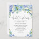 Blue Hydrangea Greenery Watercolor Bridal Shower Invitation