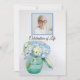 Invite guests to remember your loved-one after their passing with the pretty Blue Hydrangea in Jar Celebration of Life Invitation. This classy custom flowery death tribute memorial invite features a charming floral photograph of a blue hydrangea flower blossom in a glass jar. Personalize it with a picture, details of the deceased and funeral details. Available as a printed invitation for mailing and/or as a digital download for easy sharing digitally online.