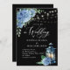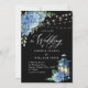 Blue Hydrangea Lantern Black Background Wedding Invitation