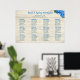 Wood and blue hydrangea seating chart poster for seating up to twelve tables, with eight (or fewer) guests at each. Light wood grain with pretty blue hydrangea bunch in the top right-hand corner. This 23 x 36 inch seating chart has black text in both script, for up to 12 table numbers, and printed text for guests' names. Married names at top in elegant and modern, hand-written font with one or two lines for date and location of celebration Tables are listed horizontally, but that is easy to change by changing the numbers using the templates. For fewer tables, simply delete sections as needed, keeping the look symmetrical. Upgrade the paper if you wish.