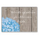 Pretty blue hydrangea mason jar bridal shower words of advice cards with a wooden fence, antique damask pattern lace background and stitched pink ribbon look design. This words of wisdom for a happy marriage card is perfect for a rustic chic, country, farmhouse, garden party or barnyard style bridal shower party. The mason jar can be personalized with the initials of the bride and groom. Designed by Chrissy H. Studios, LLC. All rights reserved.