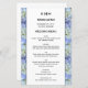 Menu de mariage personnalisé aux fleurs d'hydrangée bleu clair avec en haut des initiales en noir, texte imprimé et monogramme. Un panneau blanc sur de jolies fleurs d'hydrangée sur l'arrière - plan. Le papier abordable mesure 5 x 8 pouces. Contactez-nous pour des changements de couleur / design ou des demandes.