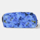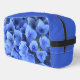 Zippered dopp kit toiletry bag that features the photo image of blue Hydrangea flower petals with matching, solid blue top and side panels. A lovely, floral design! Perfect accessory bag for your toiletries for on-the-go travel!