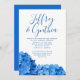 Modèle simple hydrangée bleue. Customisez facilement deux zones de texte en utilisant les prénoms du couple en haut. Le texte d'invitation est sous forme de paragraphe pour utiliser autant de libellé que nécessaire, y compris une adresse de réception. Ajoutez également un RSVP pour garder les choses simples. Le texte bleu est imprimé sur du papier blanc et les fleurs forment une jolie bordure en bas. L'inverse est bleu solide.
