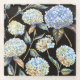 Blue Hydrangea Watercolor: Dark Seamless Pattern Glass Coaster