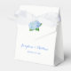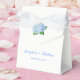These wedding favour boxes feature blue hydrangea flowers. The front and back of the box have flowers, bride and groom names and wedding date. These wedding favour boxes are part of the Blue Hydrangea Wedding Collection which includes a full range of matching wedding stationery such as wedding invitations, reply cards, information cards, address labels, stickers, postage stamps, envelopes, favour stickers, wishing well cards, programs, menus, bridal gifts and much more. Visit the collection page in our store to see the full range range of matching products that you can personalize for your wedding.
