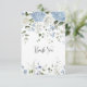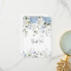 Soft watercolor florals including hydrangeas and roses in blue, white, and sage tones frame the layout, creating a balanced and romantic composition. The design evokes a sense of timeless grace, perfect for weddings or refined gatherings. Personalize with your own text
