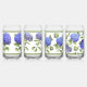A set of four glasses featuring four different designs of beautiful blue Hydrangea flowers painted from flowers grown in the artist's own garden - this is not a vintage reproduction! Bordered with coordinating green bands.
