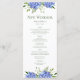 This chic and elegant, blue hydrangea engagement party menu is perfect for your tables at your engagement party. It has sections for first course, second course, sides and dessert. Instead of Menu it has the table name. The templates are super easy to use, so making this your own will take just a minute or two. Definitely place one on every place setting at your party so that your guests will know the amazing food options you have made available for them and so that they can effortlessly order their choices as your dinner service progresses.
