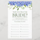 This lovely blue hydrangeas How Old Was The Bride? bridal shower game sheet is elegant and charming - perfect for any garden, botanical, rustic, romantic, floral, formal or vintage wedding. Its exquisite combination of graceful multi-hued blue hydrangeas and wispy greenery is flowy, delicate, and beautiful. This fun and easy game is sure to bring lots of laughter to any shower! Have family and friends send you pictures of the bride at different ages and have them printed. Number them and set them near these game sheets. Simply give a sheet to each guest (don't forget the pens) and let the competition begin! You'll be amazed at how many people really know the ages of the bride. In seconds you can see how your game sheet will look. Simply select Personalize this Template and type in the bride's name.