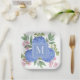 Blue Hydrangeas Modern Bouquet Custom Monogram Paper Plate
