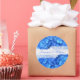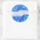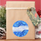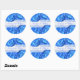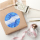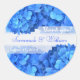 Blue hydrangea wedding thank you stickers.  Bright sky blue flowers with a white strip that holds "thank you text in white, bride and groom names in blue, and the wedding date in white.  Easy to customize and use on envelopes or at the reception to thank guests.  Round stickers come in two sizes.