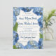 Beautiful blue hydrangeas and the look of weathered wood rustic, boho garden wedding invitation. Personalize text as preferred.