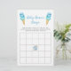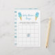 Have some fun at your baby shower with this bingo game card. Illustration of blue and mint green ice cream on a waffle cone. The bingo game asks the guests to guess what gifts the mommy-to-be will be receiving. Original illustration and design by Namibear Art Studio.©Namibear