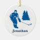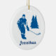 Blue Ice Hockey Player Custom Name Winter Sport Ceramic Ornament