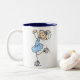 If you love stick figures and ice skating you'll get a kick out of this cute stick figure mug featuring a girl figure skater in a blue dress doing a skating routine. You can personalize this skating design mug with a name or other text on the spot using the easy customization tool available!