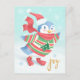 A winter festive Penguin joyfully slides across the ice as delicate snowflakes fall against a minty blue sky! Original illustration by Noël Snow.