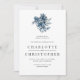 Elegant wedding invitation featuring an indigo blue flower bridal bouquet in watercolor. Loosely painted florals with thin outlines.