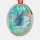 This is from an original alcohol ink painting of a royal blue Betta Fish making bubbles in water that is aqua-marine blue and peach. Copyright 2014.