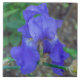 A close up photograph of a beautiful blue iris flower printed on a ceramic tile.