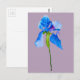 A fluid watercolor modern painting by artist Sacha Grossel of a blue iris flower. This simple elegant design is from a hand painted illustration. Modern, arty and floral design.