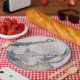 BLUE IRIS TEACUP MONOGRAM PARTY PAPER PLATE