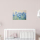 This pretty abstract impressionist artwork features blue irises on a pale yellow background. The effect is soft, peaceful and beautiful.