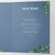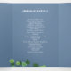 Trifold funeral program where you can add two photos of your loved one along with an obituary, order of service, their favourite psalm, poem, or prayer, and acknowledgements. The ivy funeral program is printed in a deep shade of muted blue with elegant white fonts and ivy climbing across the pages.