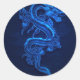 BLUE JAPANESE NEON DRAGON CLASSIC ROUND STICKER