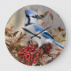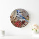 Blue Jay in Nandina Heavenly Bamboo Large Clock