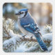 Blue Jay Perched On a Snowy Pine Square Sticker