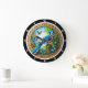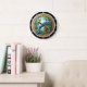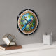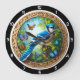 Capture the crisp, refreshing spirit of the highlands with the Blue Jay Pine Forest Heritage clock. This elegant timepiece features a high-definition graphic centred on a vibrant blue jay perched confidently on an evergreen branch. The songbird's striking sapphire and slate-grey plumage contrasts beautifully against the surrounding pine needles, scattered acorns, and delicate forest flora. The entire scene is set within a rich, dark-toned wood circular frame that is intricately carved with ornate floral scrolls and traditional leaf patterns. While the artwork masterfully mimics the dimensional textures of high-relief wood carving and oil-painted canvas, this is a durable high-definition graphic application on a premium round clock face. It is a prestigious and timeless addition to any lodge, study, or nature-inspired home.