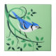 Stylized bird art of a blue jay blue on ceramic tiles. Background colour can be changed online