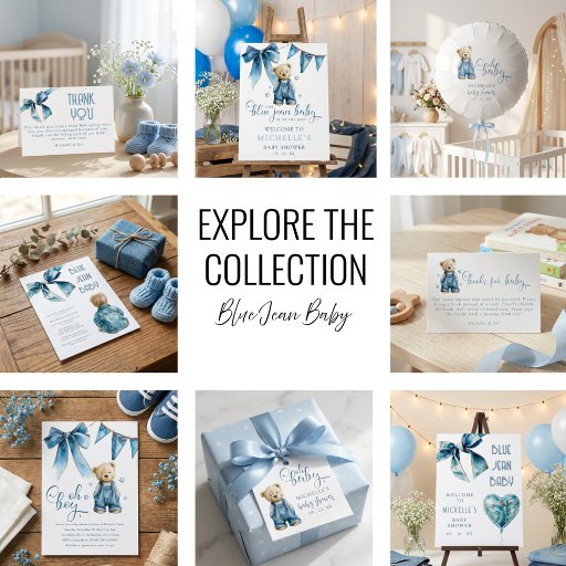 Add a touch of denim charm to your baby shower with our blue jean baby themed enclosure cards. Each card features a darling denim bow and a thoughtful request for books in place of cards. Bring your celebration to life with every detail.