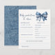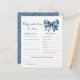 Celebrate the arrival of a little one with our charming Blue Jean Denim Bow Theme Baby Shower predictions and advice sheets! They are the perfect way to set the tone for a blue jean-themed baby shower, featuring a delightful denim coquette bow on a soft white background.