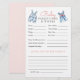 Create a keepsake the parents will cherish with this Baby Predictions and Advice card. Designed with a watercolor clothesline featuring denim and pink baby clothes, this card invites guests to guess baby details and share heartfelt advice. A sentimental activity that fits beautifully into your rustic denim baby shower décor.