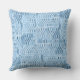 An artistic pattern based on a lace pattern covers this denim blue decorative throw pillow.