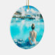 This customizable Christmas ornament features a watercolor portrait of a woman laying out in front of the Blue Lagoon in Iceland.