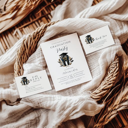 Celebrate a milestone in timeless style with this elegant dental-themed graduation design. Featuring a hand-painted blue tooth illustration framed by soft laurel leaves and topped with a classic graduation cap, the layout combines sophistication with subtle artistry. The clean typography and airy composition make this invitation perfect for future dentists, hygienists, or anyone in the dental field marking their big achievement. Personalize the name, date, and event details to create a polished keepsake that honors their hard-earned success.