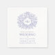 Circling leaf design monogram wedding napkins. Add your own couples monogram initials, name and wedding date in blue purple and grey on a white background. Other colours and matching wedding items available. © Original leaf drawing and design by Sarah Trett for www.mylittleedenweddings.com on zazzle.