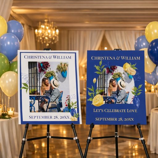 Bring fresh, romantic charm to your celebration with this Blue Lemon Garden Wedding Invitation. Featuring vibrant yellow lemons, lush greenery, and a rich blue backdrop, this design blends Mediterranean warmth with elegant botanical style. A circular photo adds a personal touch, making it perfect for couples who want a modern yet timeless announcement. Customize the names, date, and venue details to create a beautifully coordinated piece for your wedding suite.