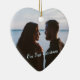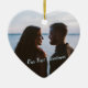 Let it snow! Display your own special memory with this beautiful blue ornament. Heart shape is a perfect symbol for love. Easily place your own memorable photo in place of the template photo as well as the name and year to make your own ones. On the back side, snow is dancing in the crystal blue sky, and downwards the dark blue forest on the bottom.