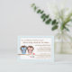 A charming poem requests that guests bring a book for the baby-to-be to start the new mom off with a library of beloved children's books. Just insert this sweet card inside the baby shower envelope. The adorable baby blue, yellow and mint colour scheme with a cute little row of matching books makes a perfect design to coordinate with just about any baby shower invitation for a boy.