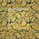 This geometric loops fabric features a pattern of blue and light grey oval shapes that are intertwined on a yellow background - by katz_d_zynes