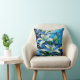 Blue Lily Floral Design With Swirling Patterns Throw Pillow