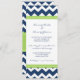 Engagement party invitations in elegant dark navy blue, bright lime green and white fun and retro chevron zigzags stripes pattern. Fully customizable with your engagement party details. Also available in a wide range of matching wedding products.