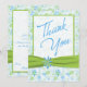 Blue, Lime, White with Lime Faux Ribbon Thank You Card