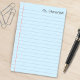 Blue lined notebook paper sticky notes. Customize it by adding your name. Great as office supplies or for back to school.