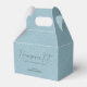 Hangover kit wedding favour box, whimsical minimalistic modern, customizable white script typography. The light pale blue printed linen texture background adds a touch of an organic feel and classic elegance. Other colours are available.